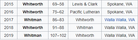 Unless you care deeply about small-college basketball or live near the Oregon/Washington border, this might be the first time you’re reading the name Eric Bridgeland. Bridgeland, to my eyes, is quietly working on something miraculous in Walla Walla. Whitman plays in the Northwest Conference in Division III. Here’s how their conference tournament worked from 1994 through 2014: