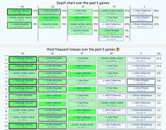 - If Josiah-Jordan James can play: Vescovi, Bowden, JJJ, Pons, Fulkerson.