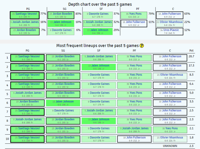 - Surprisingly, Mike White’s only cycled through four starting lineups this year, and the current one was his third. Looks like he likes it: Nembhard, Locke, Lewis, Johnson, Blackshear.