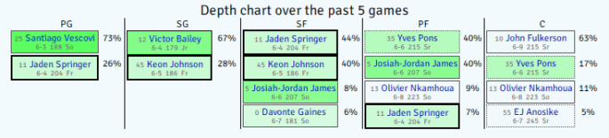 - Pons got the majority of the minutes at the 5 for the first time all season against Vanderbilt and the team was +10 with him there.