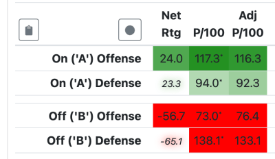 Jr. Clay versus Kennedy Chandler. Clay is the main possession-user and has mildly interesting defensive metrics, but Chandler needs to win these matchups handily; he’s just way more athletic.