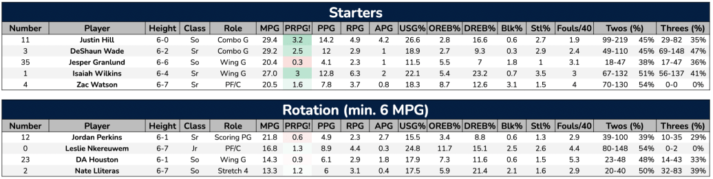 - Regular season: Rim 35.5%, 3PA 37.7%, Other Twos 26.8%