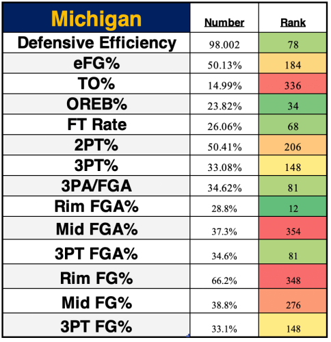 Median NCAA Tournament Team’s Defensive Efficiency: