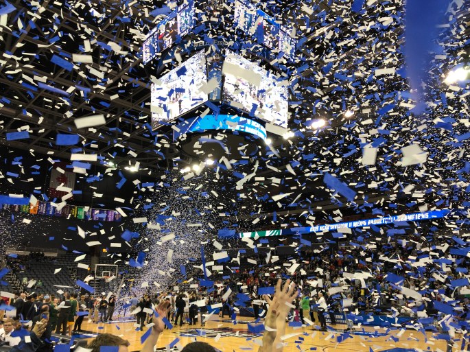 Of course, if you’ve been paying attention, you’ve seen this rise happen in real time, not all at once. After the NCAA introduced the three-point line in 1986 at 19 feet, 9 inches, the rate of three-pointers attempted to overall shots rose for 22 consecutive seasons. The NCAA moved it back a foot in 2008-09, and for the next two seasons, it seemed like it had shorted out the rise: a drop from 34.5% of all shots in 2007-08 to 33.1% the next season, followed by 32.6% in 2009-10. And then, it’s exploded: a 6.1% rise in the course of nine seasons, with teams attempting more threes than ever before.