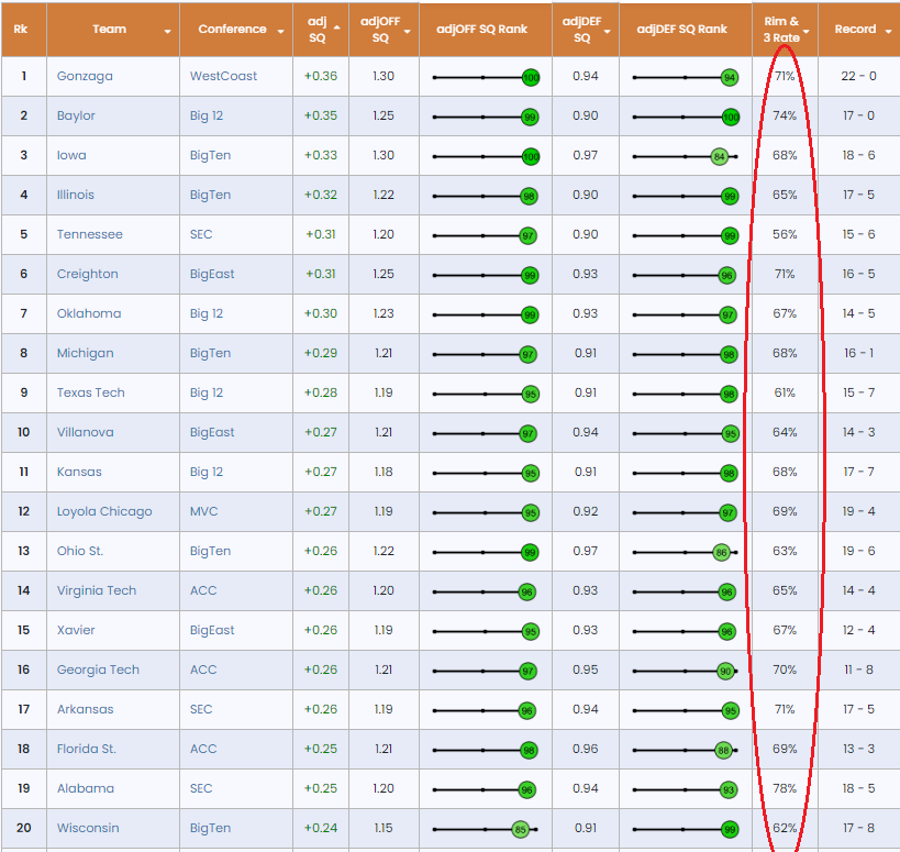 I genuinely like and would approve of this initial draft. To my eyes, I don’t see many teams missing from this top 10 (or top 20, to extend) that would be huge misses. Some of the selections will certainly appear strange, such as a 9-7 Memphis team being 18th overall or Santa Clara, the fifth-best WCC team, being in the top 12. What I would offer is this: no metric is perfect, and these two are early outliers. Still: as someone who isn’t a Memphis fan, this Memphis team is hilarious and amazing to watch. Santa Clara plays fast, scores efficiently, and is one of the best shooting teams in America. I kind of get it.