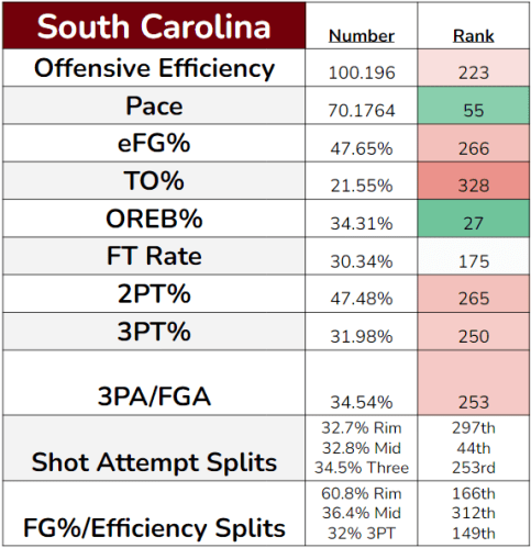 - This is the #4 defense nationally over the last month, but I would caution this because of one specific thing: teams are shooting 26.7% from three against them in that span. That is…unsustainable. Tennessee got a lot of good looks from deep in the first game and just didn’t hit them. Considering Missouri (a true Disaster Factory of a program) made more threes than Tennessee, I am withholding judgment.
