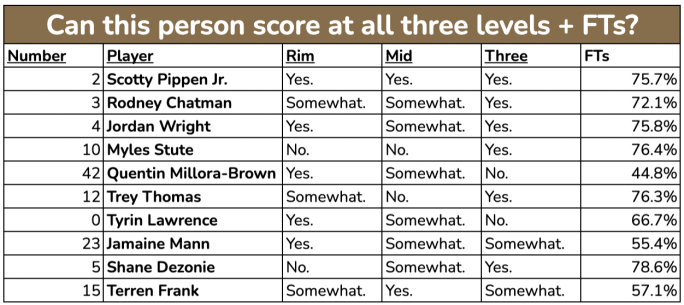 - Speaking of which: The Pippen Problem. I understand that college officiating is fundamentally different than the NBA because they’re fundamentally different games. That’s fine. But to be honest, I’ve felt a little warmer towards the NBA this season because they’ve tried to eliminate what I would charitably call 40% of Scotty Pippen, Jr.’s game: shot-faking, then blindly tossing your body like a grenade into the nearest defender. It works. It gets points. It clearly is something officials will call, unless you’re Kennedy Chandler, I guess. But does anyone actually like this?